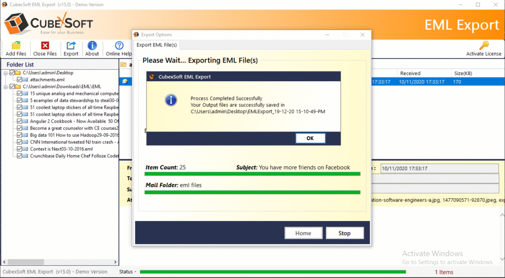 - It is safe & has no limitation of EML files in size & amount.