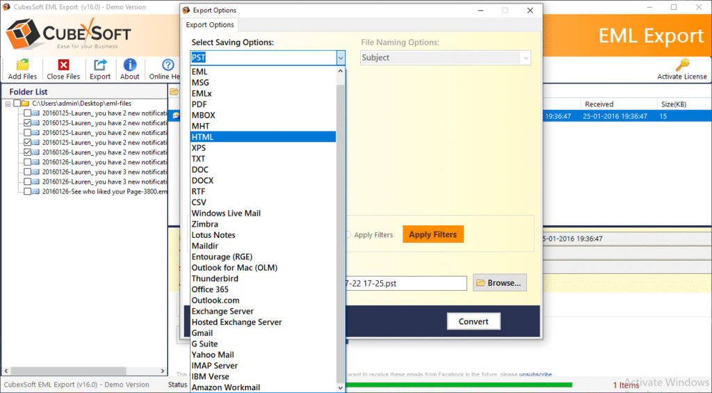 EML is the single mail extension of multiple mail application – Windows Live Mail, DreamMail, eM Client, Windows Mail, Outlook Express, Apple Mail, Thunderbird, etc. EML is the famous file extension in the history of mail backup & mail storage. It is very general extension to save mails with attachments still access the extens8ion to save mail message on local system. EML file has all details – sent/ receive, subject data, etc. metadata information.