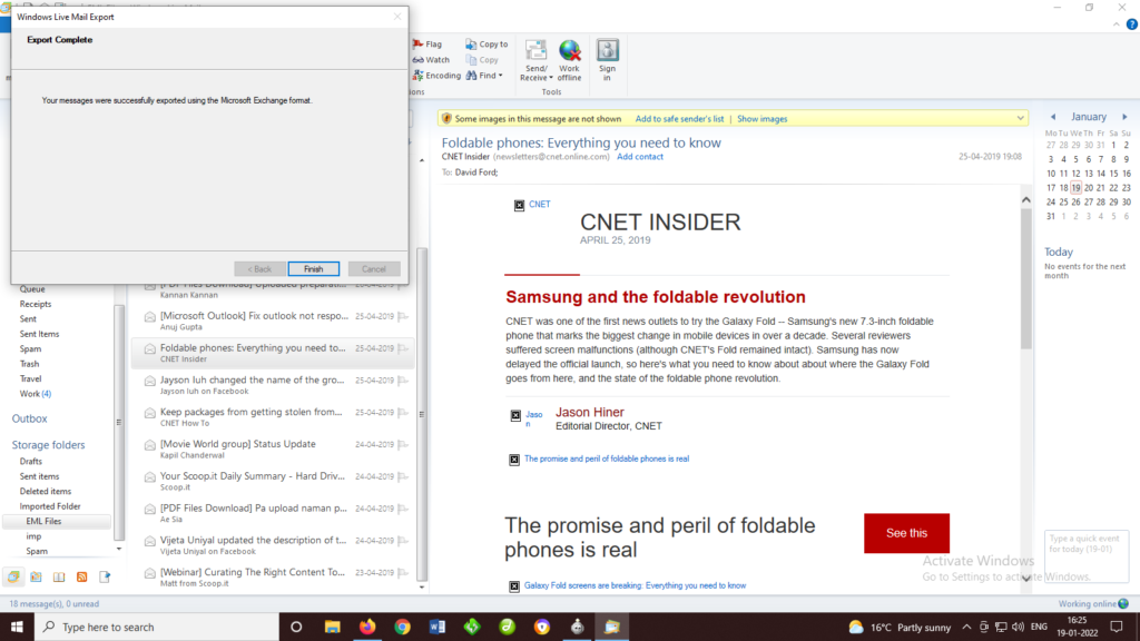 - After that check all saved EML files in Windows Live Mail.
