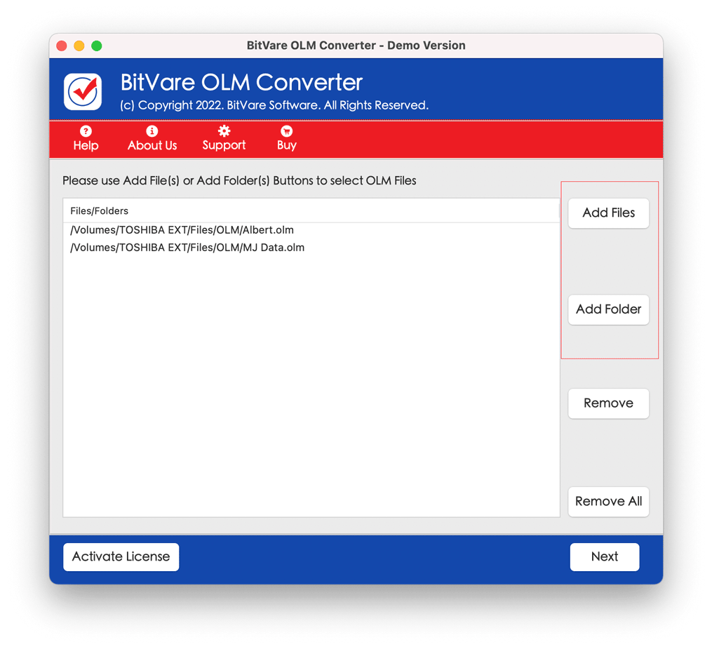 Here we recommend using the safest way BitVare OLM Converter for Mac to perform the task. The application is reliable, affordable, and secure also contains simple three easy steps and is easily accessible by any novice and technical users. Also, multiple formats saving options offered by the software will provide you complete freedom to open OLM files into your desired podium.